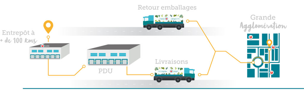 Afin d’approvisionner les magasins U des grandes métropoles se situant à plus de 100 km de nos entrepôts, U LOG a décidé de mettre en place des Plateformes de Distribution Urbaine (PDU).
